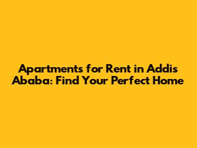 Apartments For Rent In Addis Ababa: Find Your Perfect Home