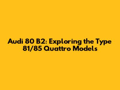 In conclusion, the Audi 80 B2, whether in its Type 81 or Type 85 form, is a significant car that deserves recognition. Its blend of practicality, innovation, and driving enjoyment made it a success in its time, and its legacy continues to inspire today. From its stylish design to its revolutionary Quattro all-wheel-drive system, the Audi 80 B2 is a true classic that will continue to be appreciated for generations to come.