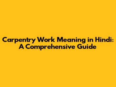 Carpentry Work Meaning In Hindi: A Comprehensive Guide