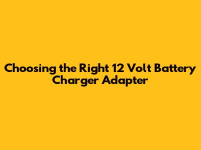 Choosing the appropriate 12 volt battery charger adapter depends on several factors, including the type of battery, its capacity, and the intended use. Here are some guidelines to help you make the right choice: