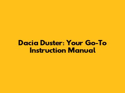 Why You Need the Dacia Duster Instruction Manual