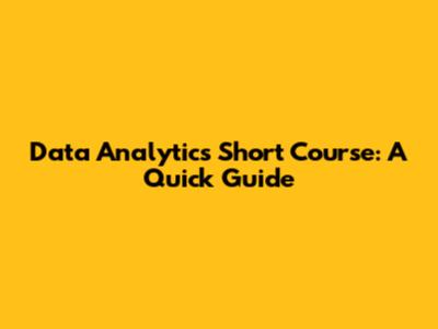 Data Analytics Short Course: A Quick Guide