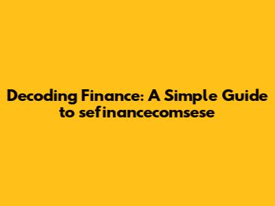 Decoding Finance: A Simple Guide To Sefinancecomsese
