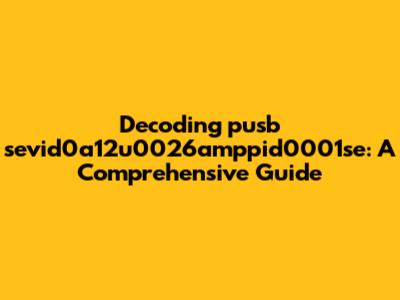 Decoding Pusb Sevid0a12u0026amppid0001se: A Comprehensive Guide