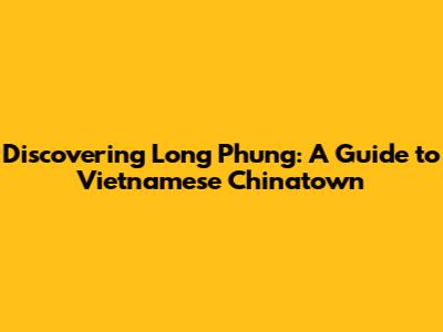 Hey guys! Ever heard of Long Phung, the vibrant Vietnamese Chinatown? If not, you're totally missing out! This bustling hub of culture, cuisine, and community is a true hidden gem, offering a unique glimpse into the heart of Vietnamese heritage. Let's dive deep and explore everything Long Phung has to offer, from the best pho spots to the most authentic cultural experiences. So, buckle up, because we're about to embark on an exciting journey through the sights, sounds, and flavors of this incredible Chinatown. You won't regret it!
