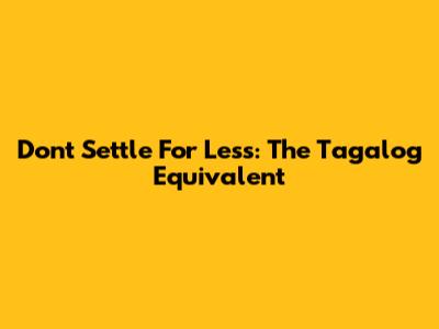 Don't Settle For Less: The Tagalog Equivalent