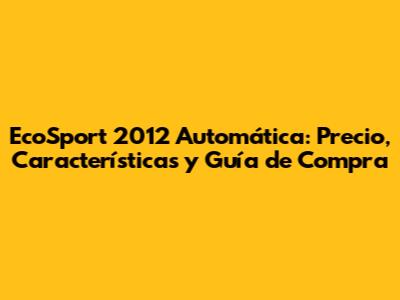 EcoSport 2012 Automática: Precio, Características Y Guía De Compra