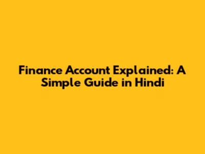 Finance Account Explained: A Simple Guide In Hindi