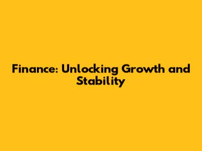 Finance: Unlocking Growth And Stability
