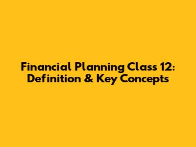 Financial Planning Class 12: Definition & Key Concepts