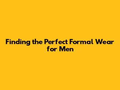 Finding The Perfect Formal Wear For Men