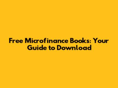 Free Microfinance Books: Your Guide To Download