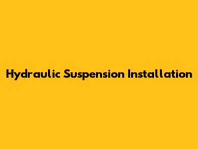 Hydraulic Suspension Installation Guide
