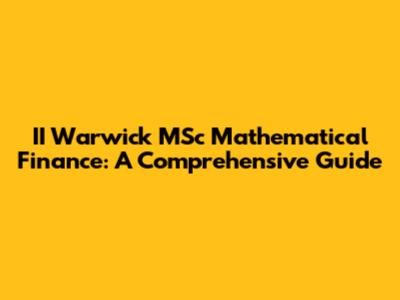 II Warwick MSc Mathematical Finance: A Comprehensive Guide