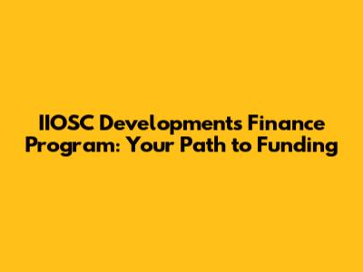IIOSC Developments Finance Program: Your Path To Funding