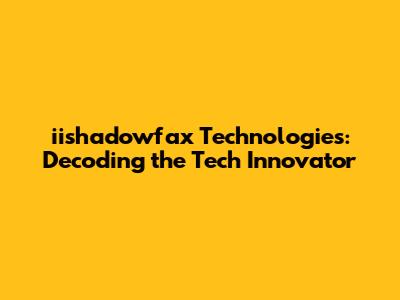 Iishadowfax Technologies: Decoding The Tech Innovator