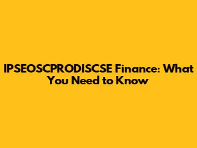 IPSEOSCPRODISCSE Finance: What You Need To Know