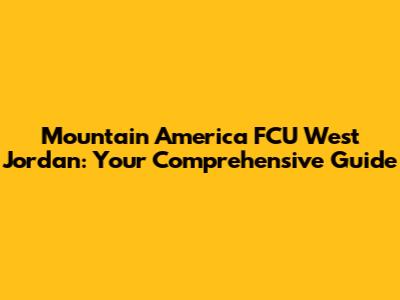 Hey guys! Are you looking for a reliable credit union in West Jordan? Look no further! Let's dive into everything you need to know about Mountain America Federal Credit Union (FCU) in West Jordan. This guide will cover locations, services, benefits, and more, making your banking experience a breeze. Whether you're a long-time member or considering joining, this article is tailored just for you. We're breaking it all down, so you can make the most of what Mountain America FCU offers right here in West Jordan. Let’s get started!