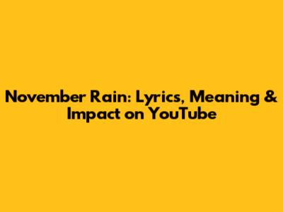 In conclusion, "November Rain" is more than just a song; it's a cultural phenomenon that has left an indelible mark on the world of music and beyond. Its lyrics, music, and music video combine to create a powerful and moving experience that resonates with listeners of all ages. On YouTube, "November Rain" has achieved legendary status, amassing billions of views and inspiring countless covers, reactions, and discussions. Its enduring appeal lies in its timeless themes, its masterful execution, and its ability to evoke deep emotions. As long as there are hearts that yearn and souls that seek connection, "November Rain" will continue to touch and inspire.