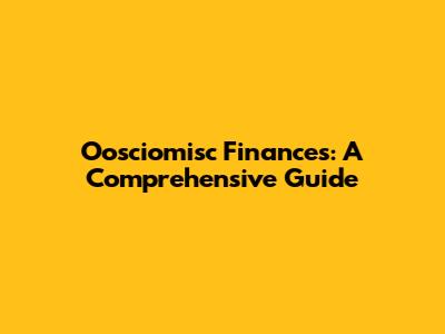 Oosciomisc Finances: A Comprehensive Guide