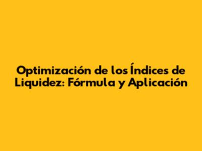 Optimización De Los Índices De Liquidez: Fórmula Y Aplicación