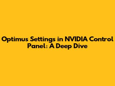 Optimus Settings In NVIDIA Control Panel: A Deep Dive