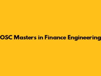 OSC Masters: Finance Engineering