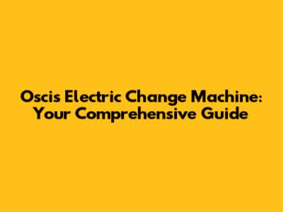 Oscis Electric Change Machine: Your Comprehensive Guide