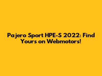 Webmotors: Your Gateway to Finding the Pajero Sport HPE-S 2022