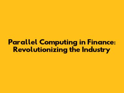 Parallel Computing's Impact On Finance