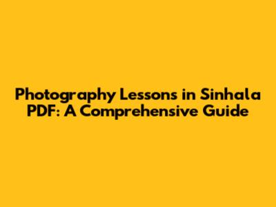 Photography Lessons In Sinhala PDF: A Comprehensive Guide
