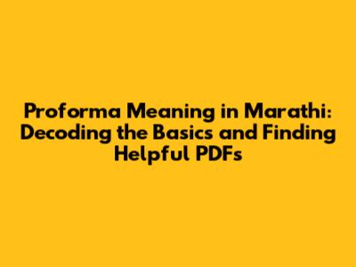 Proforma Meaning In Marathi: Simplified Guide & PDF Resources