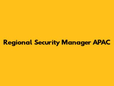 Regional Security Manager APAC: Roles, Skills, And Opportunities
