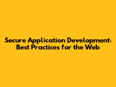 Secure Application Development: Best Practices For The Web