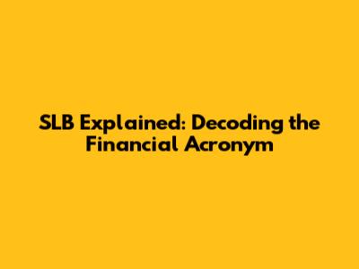 SLB Explained: Decoding The Financial Acronym