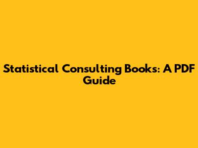 Statistical Consulting Books: A PDF Guide