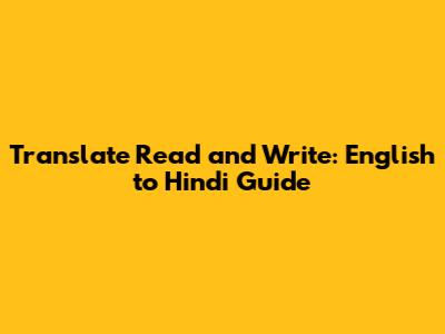 Translate Read And Write: English To Hindi Guide
