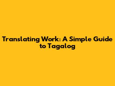 Translating Work: A Simple Guide To Tagalog