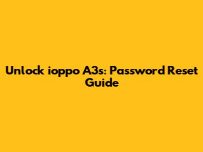 Unlock Ioppo A3s: Password Reset Guide