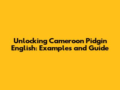 Unlocking Cameroon Pidgin English: Examples And Guide