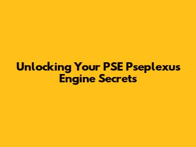 Unlocking Your PSE Pseplexus Engine Secrets