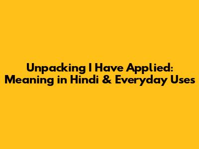 Unpacking 'I Have Applied': Meaning In Hindi & Everyday Uses