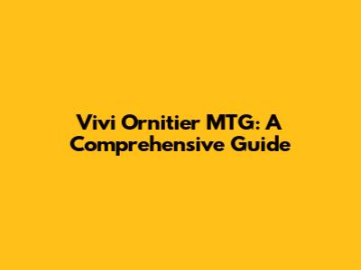 Vivi Ornitier MTG: A Comprehensive Guide